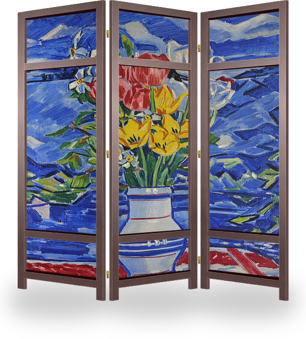 Ширма эконом отлично подойдет для временного размещения, рекламы, для отгораживания объектов интерьера и его дополнения. Лицевая сторона с изображением, обратная сторона открытый каркас