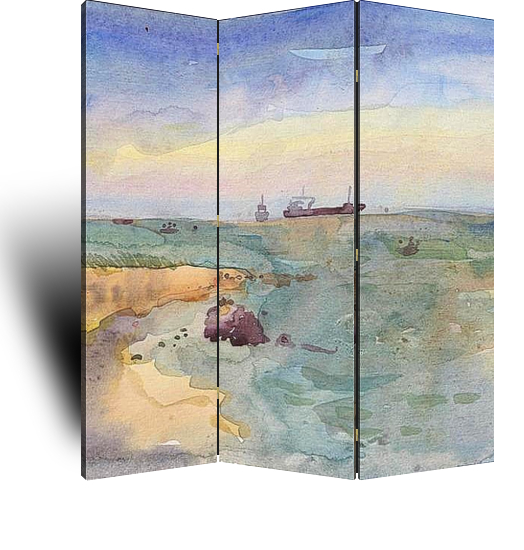 Описание ширмы В 2006 году я каждый день ходила на море и выполняла акварельные этюды - состояния моря. такое оно разное, и в то же время - оно одно Азовское - совсем непохожее на другие моря.