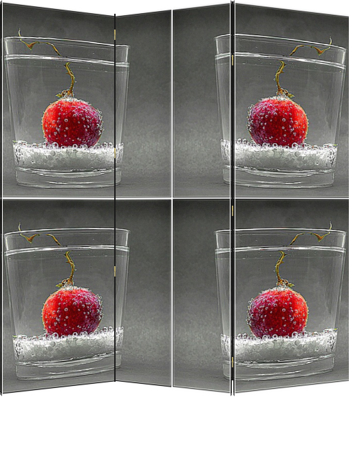 Описание ширмы Эта работа была выполнена для фотоконкурса по теме "Композиция в стакане". На пенопластовом основании закреплена ягода винограда.А потом налита газированная вода.