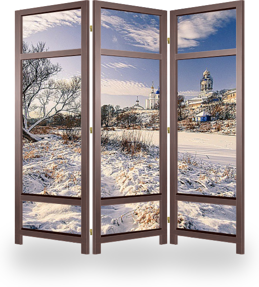 Ширма эконом отлично подойдет для временного размещения, рекламы, для отгораживания объектов интерьера и его дополнения. Лицевая сторона с изображением, обратная сторона открытый каркас