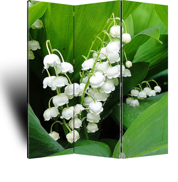 Описание ширмы Ароматные белые колокольчики майского ландыша, среди сочной весенней зелени, вызывают нежные, трогательные чувства и весенне настроение. Ландыш - один из лучших весенних цветов.