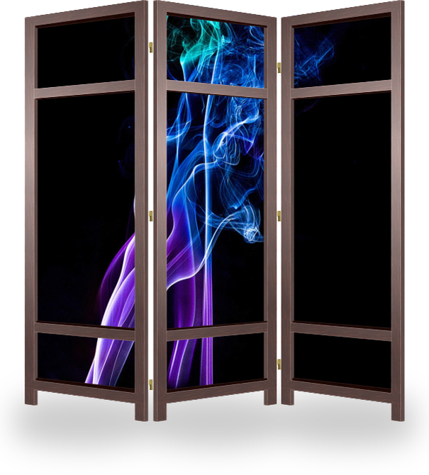 Описание ширмы На фотографии изображен разноцветный дым. сфотографированный дым с последующей обработкой в графическом редакторе. Использовались три источника дыма и два источника света.