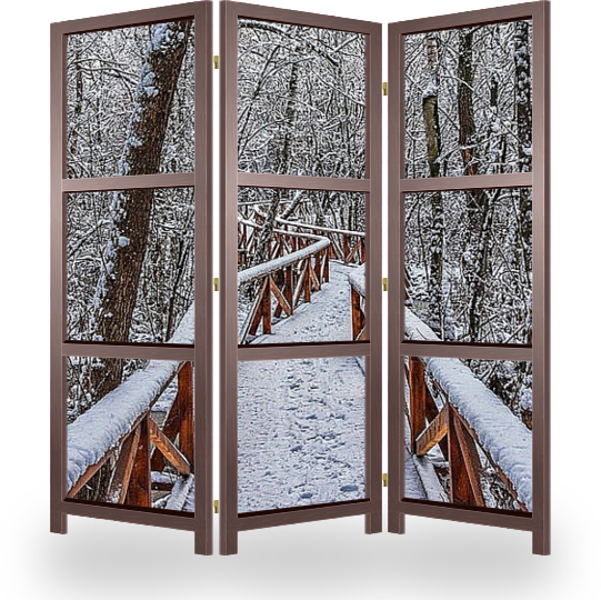 Описание ширмы Город Москва, национальный парк "Лосиный остров", зима, снег, мостик, деревья, ноябрь 2015 года. Зимняя прогулка по парку после обильного снегопада. Не так часто в Москве, в ноябре, можно увидеть такое количество снега.