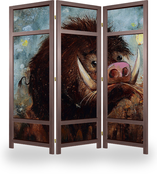 Описание ширмы дикий кабанчик, светлячок,туман,летняя ночь, — Как всё-таки хорошо, что мы друг у друга есть! — Ты только представь себе: меня нет, ты сидишь один и поговорить не с кем.