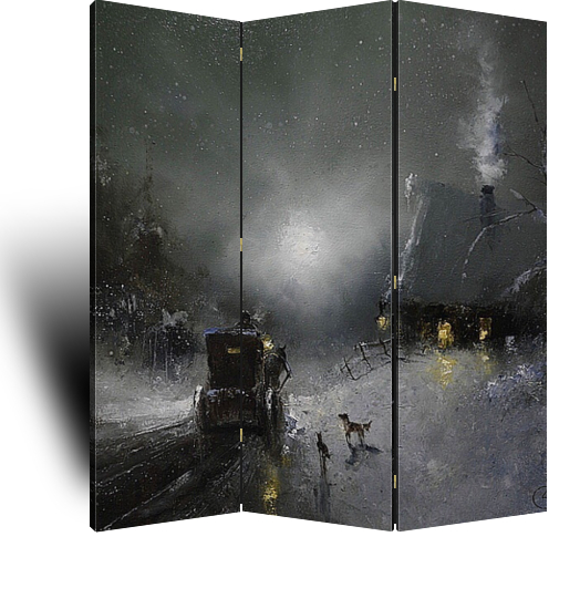Описание ширмы Работа выполнена на льняном холсте (производство Вышний Волочёк) на подрамнике, корпусный, акриловый подмалевок +масло (Италия/Голландия), работа выполнена в оригинальной технике (Know how) присущей только Игорю Медведеву.
