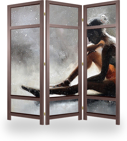 Описание ширмы Работа выполнена на льняном холсте (производство Вышний Волочёк) на подрамнике, корпусный, акриловый подмалевок +масло (Италия/Голландия), работа выполнена в оригинальной технике (Know how) присущей только Игорю Медведеву.