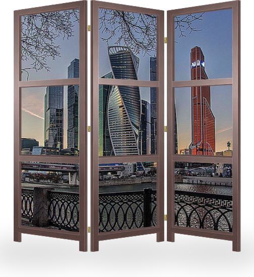 Описание ширмы Московский международный деловой центр Москва-Сити – это красивый архитектурный район на Пресненской набережной. Москва-Сити – это зона деловой активности, включающая в себя бизнес, апартаменты для проживания и отдых.