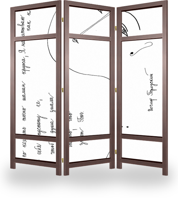 Описание ширмы Стихи Бродского - это завораживающий ритм, схожий с медитацией.. ." И по комнате точно шаман кружа, Я наматываю как клубок на себя пустоту ее, чтоб душа знала что-то, что знает Бог" Бродский читал свои стихи наподобие молитвенных распевов в опреде