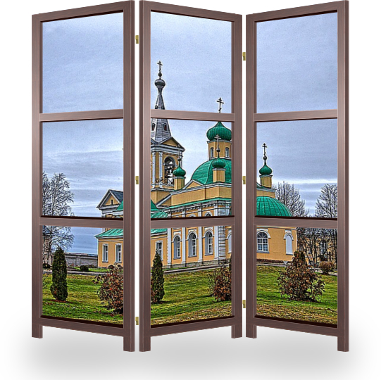 Ширма эконом отлично подойдет для временного размещения, рекламы, для отгораживания объектов интерьера и его дополнения. Лицевая сторона с изображением, обратная сторона открытый каркас