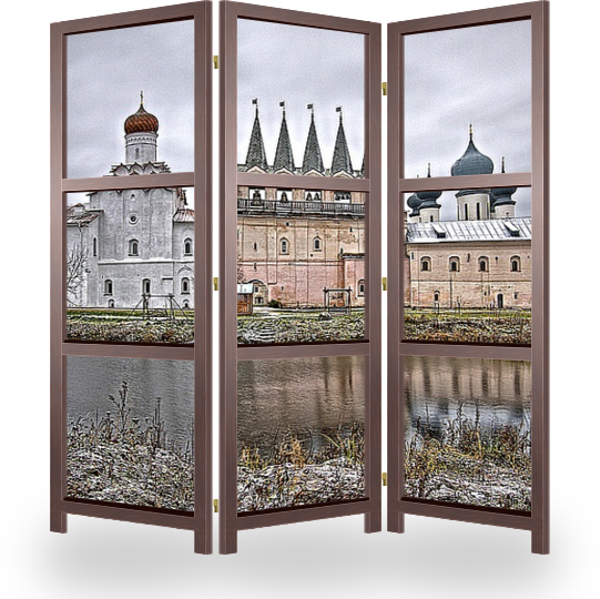 Ширма эконом отлично подойдет для временного размещения, рекламы, для отгораживания объектов интерьера и его дополнения. Лицевая сторона с изображением, обратная сторона открытый каркас