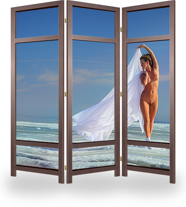 Описание ширмы Фото сделано в Кронштадте, в начале апреля. Передает настроение ранней весны. Тюль, который держит девушка гармонично сочетается со льдом, на котором она стоит.