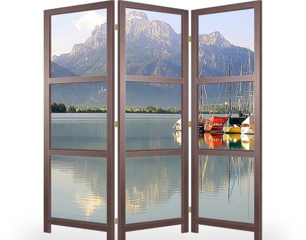 Описание ширмы Снимок сделан на берегу озера Форгензее, в Баварии. В горах виднеется знаменитый замок короля-романтика Нойшванштайн