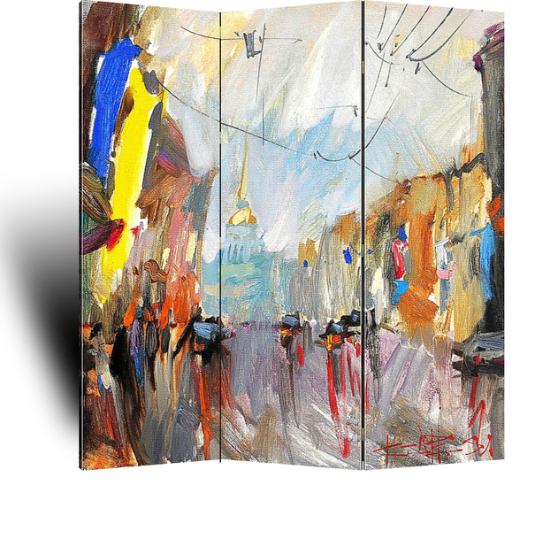 Описание ширмы Картина из серии "Состояние Петербурга" написана художником Константином Сухоплюевым. Сам художник Родился и вырос в Санкт-Петербурге. С ранних лет ему знаком запах масляных красок, он постоянно находился в художественных кругах, поскольку отец Конст