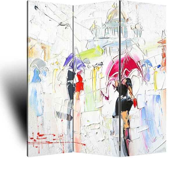 Описание ширмы Картина из серии "В дождь и после" написана художником Константином Сухоплюевым. Сам художник Родился и вырос в Санкт-Петербурге. С ранних лет ему знаком запах масляных красок, он постоянно находился в художественных кругах, поскольку отец Константин