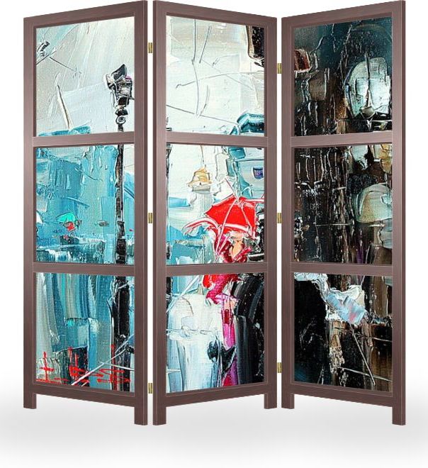 Описание ширмы Картина из серии "В дождь и после" написана художником Константином Сухоплюевым. Сам художник Родился и вырос в Санкт-Петербурге. С ранних лет ему знаком запах масляных красок, он постоянно находился в художественных кругах, поскольку отец Константин