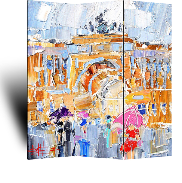 Описание ширмы Картина из серии "В дождь и после" написана художником Константином Сухоплюевым. Сам художник Родился и вырос в Санкт-Петербурге. С ранних лет ему знаком запах масляных красок, он постоянно находился в художественных кругах, поскольку отец Константин