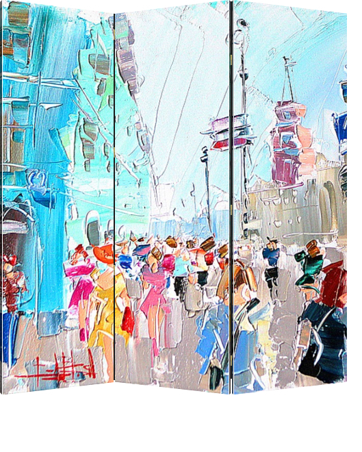 Описание ширмы Картина из серии "В дождь и после" написана художником Константином Сухоплюевым. Сам художник Родился и вырос в Санкт-Петербурге. С ранних лет ему знаком запах масляных красок, он постоянно находился в художественных кругах, поскольку отец Константин