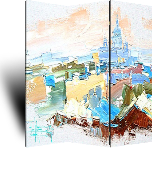 Описание ширмы Картина из серии "В дождь и после" написана художником Константином Сухоплюевым. Сам художник Родился и вырос в Санкт-Петербурге. С ранних лет ему знаком запах масляных красок, он постоянно находился в художественных кругах, поскольку отец Константин