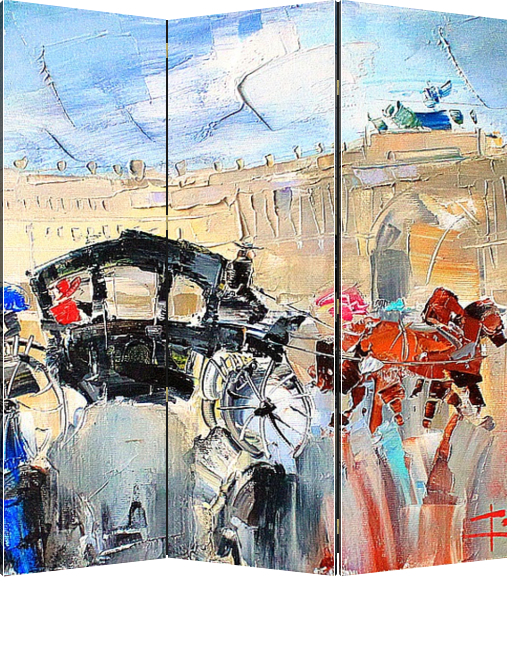 Описание ширмы Картина из серии "В дождь и после" написана художником Константином Сухоплюевым. Сам художник Родился и вырос в Санкт-Петербурге. С ранних лет ему знаком запах масляных красок, он постоянно находился в художественных кругах, поскольку отец Константин