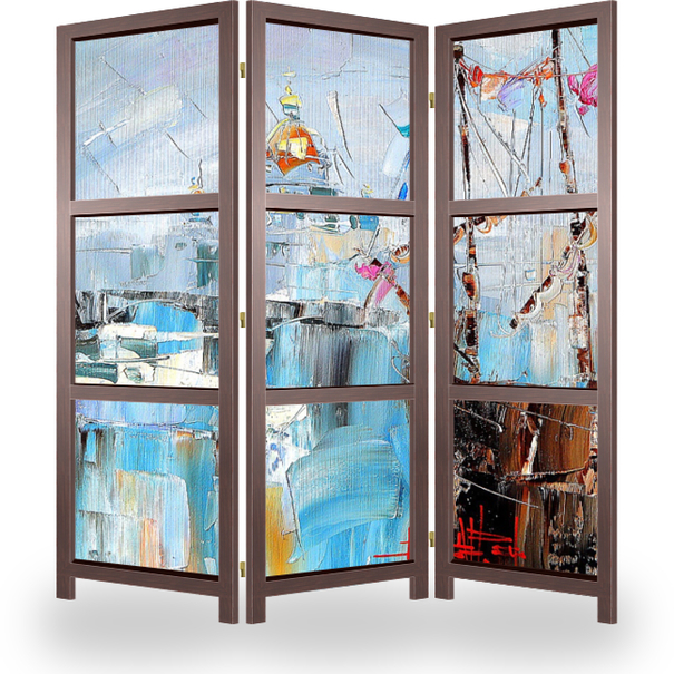 Описание ширмы Картина из серии "В дождь и после" написана художником Константином Сухоплюевым. Сам художник Родился и вырос в Санкт-Петербурге. С ранних лет ему знаком запах масляных красок, он постоянно находился в художественных кругах, поскольку отец Константин