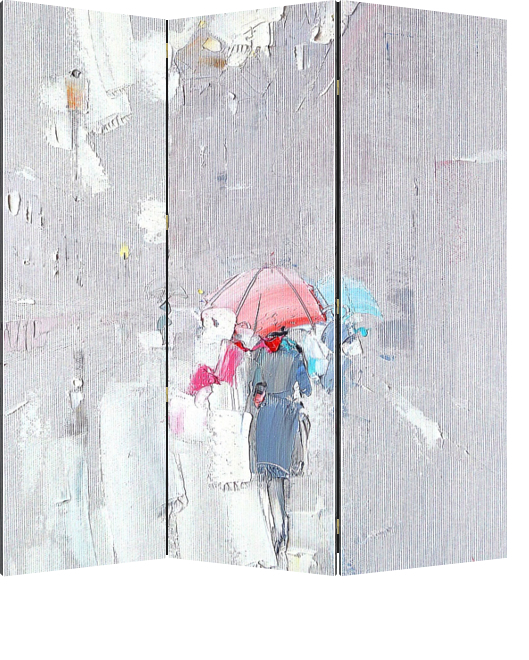 Описание ширмы Картина из серии "В дождь и после" написана художником Константином Сухоплюевым. Сам художник Родился и вырос в Санкт-Петербурге. С ранних лет ему знаком запах масляных красок, он постоянно находился в художественных кругах, поскольку отец Константин
