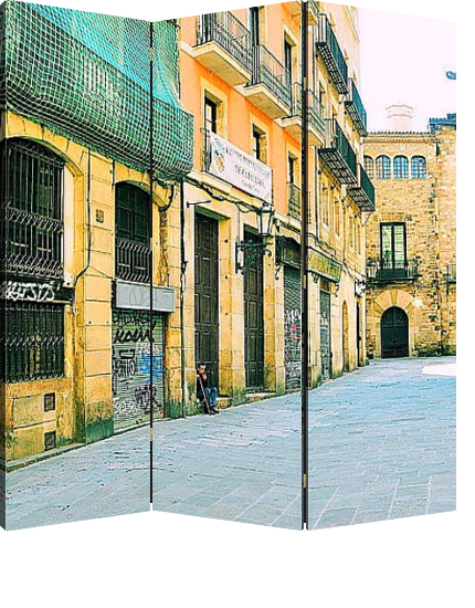 Описание ширмы Готический квартал – это узкие средневековые улочки, переплетающиеся между церквей, дворцов, площадей, остатков древнеримских крепостных стен и оборонительных укреплений. Здесь можно бродить часами – не важно, по заранее спланированному маршруту или