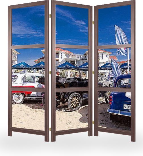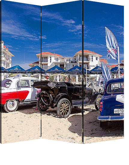 Описание ширмы Выставка старых ретро-автомобилей,восстановленных до первоначального состояния.Автомобили участвовали в автопробеге,а затем выставлены на смотр для любителей.