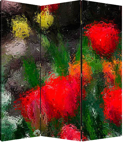 Описание ширмы Снимок тюльпанов снят в моём саду после дождя и обработан под акварель.Яркие весенние цветы могут послужить украшением Вашего дома .Разноцветная палитра тюльпанов восхищает взор и радует душу.