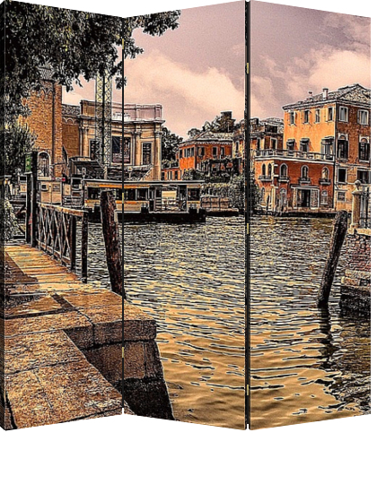 Описание ширмы Старинные каменные постройки на берегах каналов в Венеции.Спокойная,тихая вода,маленькие уютные набережные.Большой простор для художников и фотографов.Городской уголок отдыха.