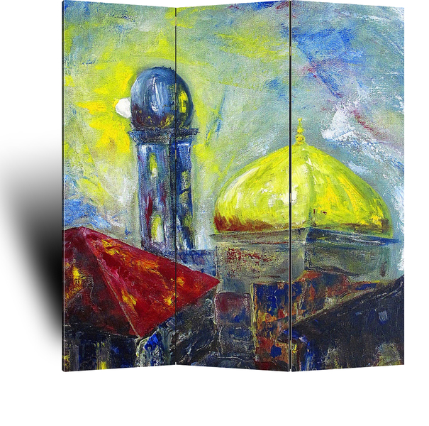 Описание ширмы Данная работа выражает впечатление автора от архитектуры Иерусалима. Его многовековой истории и переплетения в нем различных важных исторических событий и религиозных сооружений.