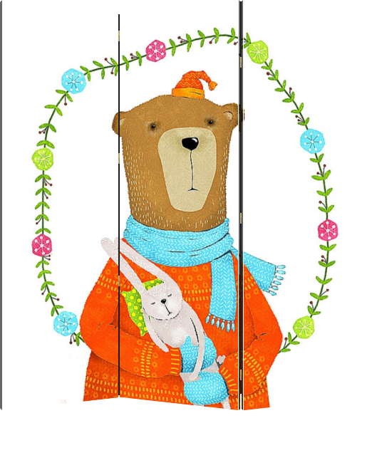 Описание ширмы Иллюстрация выполнена в максимальном размере 40х40 см. Картинка-настроение о дружбе, нежности, зиме. Портрет друзей. Отлично подойдет в качестве постера или картины в детскую комнату. Возможно исполнение в "книжном" формате.