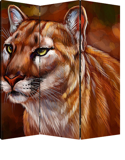 Описание ширмы Пу?ма, или горный лев[1], кугуар (лат. Puma concolor) — хищник из семейства кошачьих. Обитает в Северной и Южной Америке. Самый крупный представитель рода пум. Длина тела животного составляет 100—180 см, при длине хвоста 60—75 см, высоте в холке 61—7