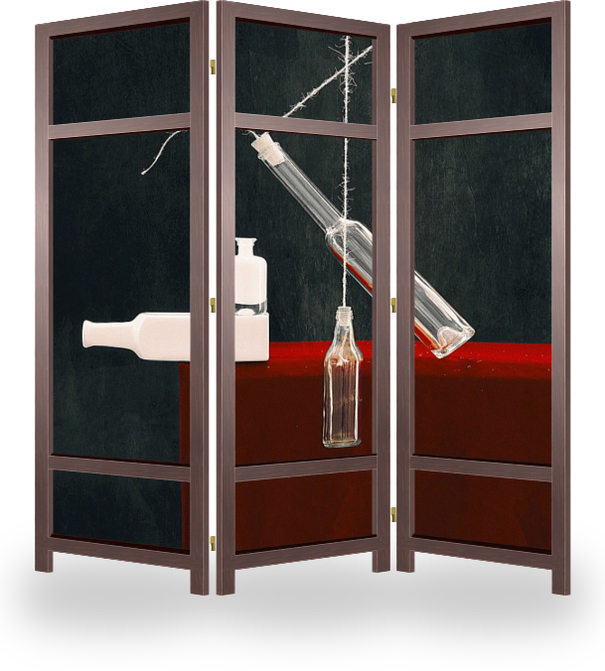 Описание ширмы Натюрморт со стеклянной посудой снимался с целью попробовать передать посредством представленных предметов их сочетание между собой, не смотря на их разные цвета и разную геометрию, соединяя в единую композицию.
