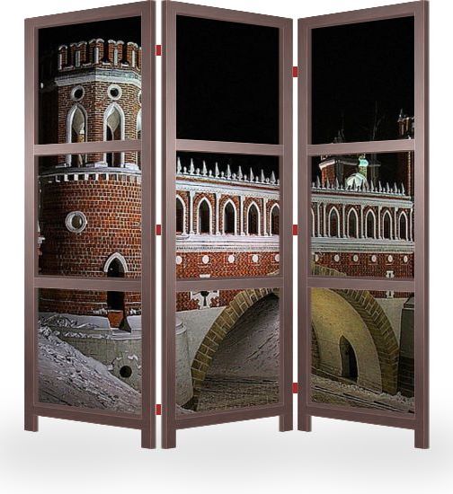 Описание ширмы Фигурный мост, возведённый по принципу виадука, декорирован богато и разнообразно: необычная кирпичная кладка образует геометрические рельефы, по бокам — белокаменные георгиевские кресты. Высокий парапет в обрамлении узких стрельчатых проёмов соединя