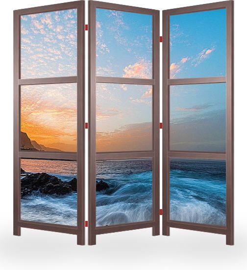 Описание ширмы Сочетание теплых тонов на облаках закатного солнца и холодных тонов морской воды создают пейзажу необычайную красоту. Съемка проводилась на острове Тенерифе в районе Гарачико.