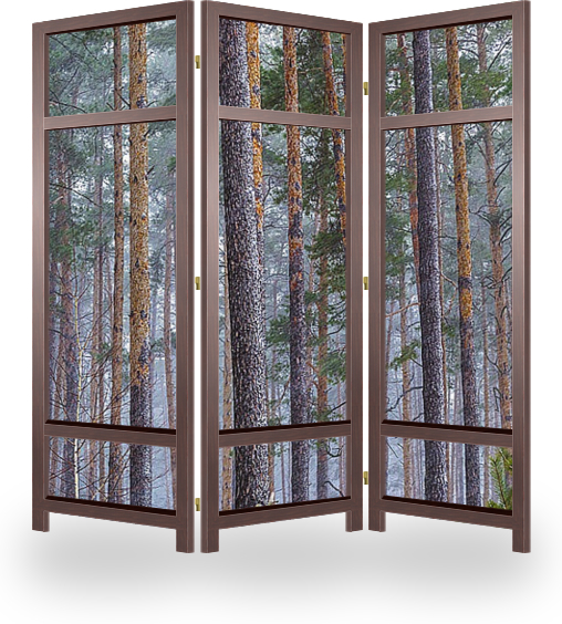Описание ширмы Густой сосновый лес.Снег то прекращается то снова идет.Сильный ветер на вершине деревьев слегка шатает их в стороны создавая при этом характерные звук.Могучие деревья поражают своей красотой!