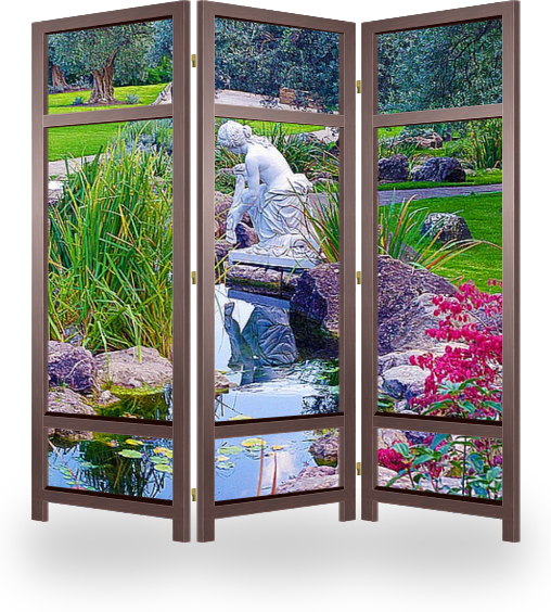 Ширма эконом отлично подойдет для временного размещения, рекламы, для отгораживания объектов интерьера и его дополнения. Лицевая сторона с изображением, обратная сторона открытый каркас