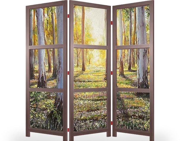 Описание ширмы Утро в весеннем лесу это яркое эмоциональное настроение природы. Будет создавать настроение и комфорт в вашем доме. Важно правильно подобрать багет. Картина написана в 2013 году на холсте маслом.
