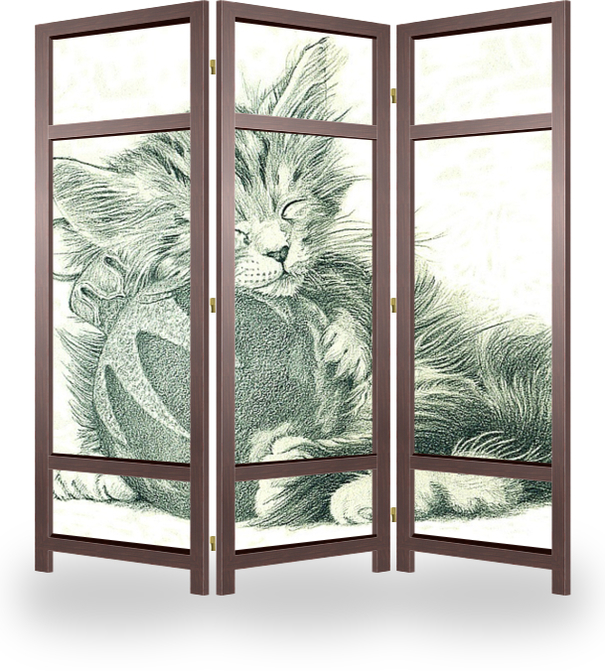 Описание ширмы Котята и ёлка - это особая тема! Погрызть гирлянду, взобраться по стволу или стащить шар с ветки - так много "обязательных" занятий! И после стольких важных и интересных дел так хорошо подремать там, где сморила усталость...
