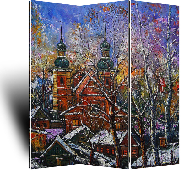 Описание ширмы Автор Степанюк Константин Константинович. Работа " Вечер перед Рождеством в Дубровице" экспонировалась на персональной выставке в Краеведческом музее г. Ровно.
