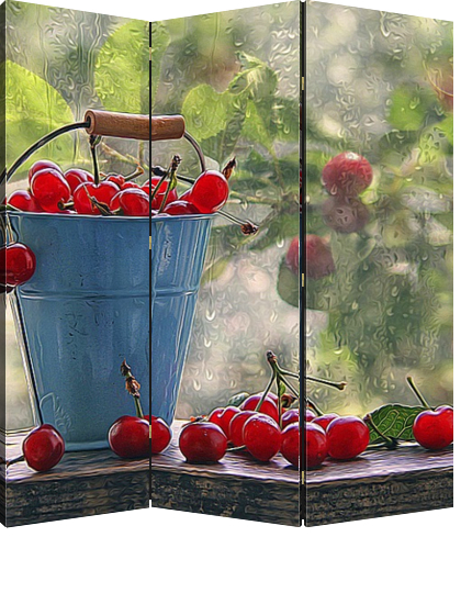 Описание ширмы Летом я ездила на дачу к бабушке и дедушке. Мне очень нравится там быть – там так тихо и свежо, воздух чистый, пахнет травой и ягодами. Я с трудом насобирала маленькое ведерко, потому что очень много ягод ела – такие душистые и вкусные растут тольк