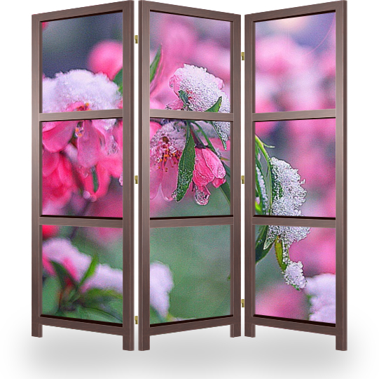 Описание ширмы Наступление весны - это пробуждение природы, начало активной жизни природы. Быстро набухают и лопаются почки, из которых появляются нежно-зеленые листочки и розовые цветочки.