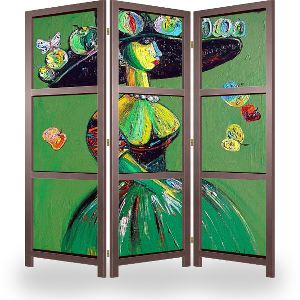 Описание ширмы Авангардная леди с фруктами, холст, масло, 90х70, 2014 год.