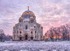 Описание ширмы Зимнее утро на Якорной площади в Кронштадте, вид на Морской Собор. Снимок сделан в январе 2016 года.