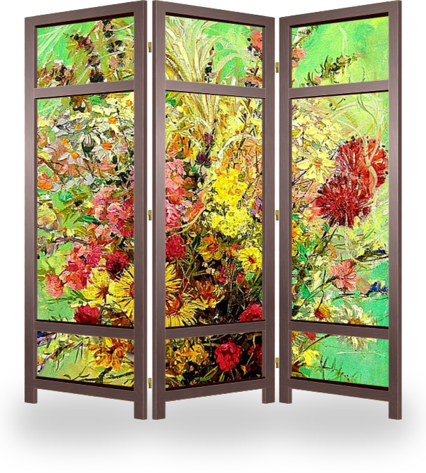 Описание ширмы На мой взгляд самые прекрасные цветы в природе - полевые , они полны свежести ветра и наполнены летним солнцем. А ещё они таят в себе море неожиданности. Каждый из них неказист, но собери их вместе в букет и засверкает разнотравье всеми красками пр