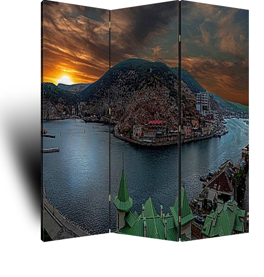 Описание ширмы Сейчас Балаклава является популярным крымским курортом. Туристов привлекает не только город с древней историей и большим количеством памятников, но и окрестные пляжи, куда можно добраться на катерах, и живописные скалы у мыса Айя с гротами