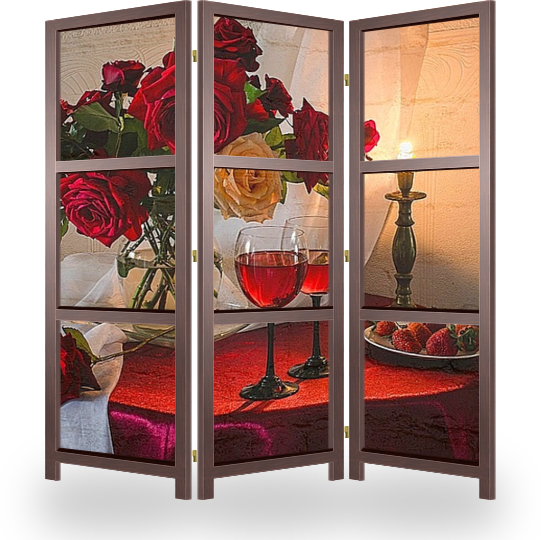 Описание ширмы Красные розы - символ страсти и желания; настоящая любовь. Многие знают, что именно красные и розовые бутоны, источающие удивительный аромат, выражают глубокую любовь и страсть. Кроме того, красные розы во все времена дарили в знак уважения и восхище