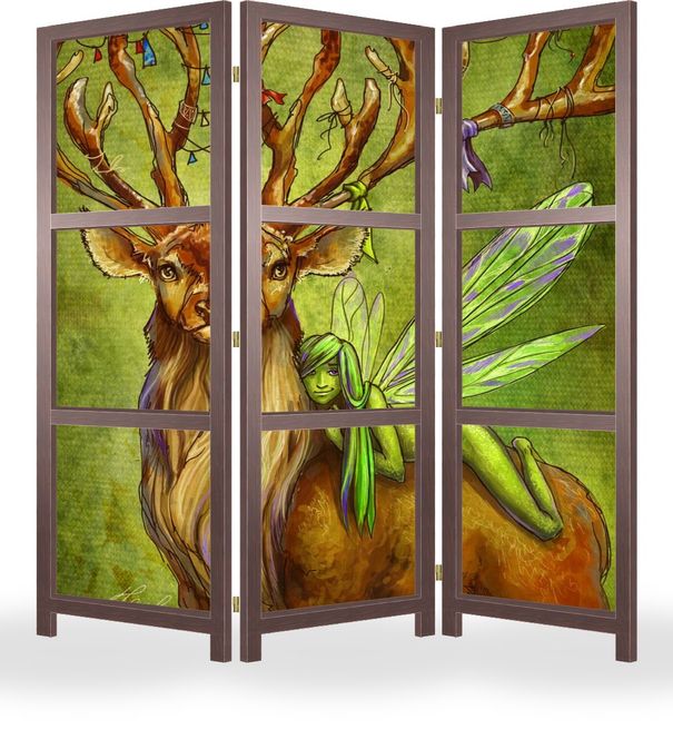Описание ширмы Тишина леса, настороженный взгляд могучего оленя и нежная фея на его спине.... нарисована картина была тихой ночью, под завораживающую музыку -мечты о теплых днях в лесу....