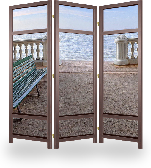 Ширма эконом отлично подойдет для временного размещения, рекламы, для отгораживания объектов интерьера и его дополнения. Лицевая сторона с изображением, обратная сторона открытый каркас