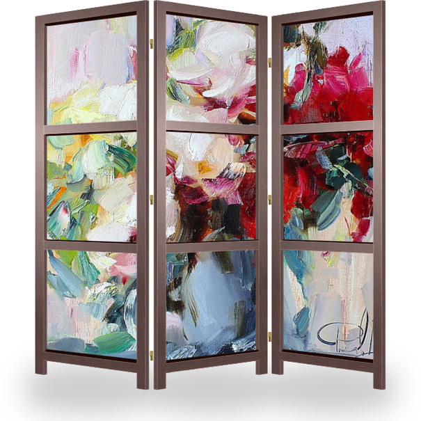 Описание ширмы Работа создавалась в 2012 году во время проведения Всероссийского плэнэра на реке Волга. Букет состоит из полевых цветов и написан в один прием в светлых пастельных тонах. Стат